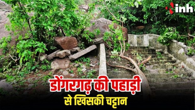 राजा शर्मा// डोंगरगढ़: छत्तीसगढ़ के विश्व प्रसिद्ध मां बमलेश्वरी पहाड़ी पर पहली बार एक विशाल चट्टान खिसककर गिर गई है. जिससे इलाके में दहशत फैल गई। चट्टान गिरने से कई बड़े पेड़ धराशायी हो गए और दर्शन के लिए वन विभाग द्वारा बनाई पीछे की नई सीढ़ियों जो की मां रणचंडी प्राचीन मंदिर हैं यहां पर माता स्वयंभू हैं। यही से एक रास्ता मां बम्लेश्वरी पहाड़ों में स्थित मंदिर जाने का दूसरा मार्ग हैं । जिसका एक हिस्सा बुरी तरह क्षतिग्रस्त हो गया। स्थानीय लोगों ने बताया कि पहाड़ी पर ऐसा हादसा पहली बार हुआ है। स्थानीय निवासी मान बाई नेताम ने बताया,“सुबह जैसे बादल गरजते हैं वैसे आवाज आई। हमारा लड़का चिल्लाया कि माई, पत्थर गिर रहा है। हम लोग तो बचपन से यहां हैं, लेकिन ऐसा पहली बार देखा।” गनीमत रही कि चट्टान दूसरी चट्टानों पर अटक गई, वरना नीचे बसे घरों और रास्तों पर बड़ा हादसा हो सकता था।