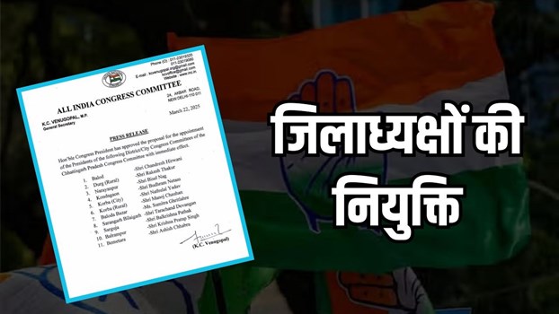 इसी तरह कोरबा (शहर) में नाथूलाल यादव, बलौदा बाजार में एमएस सुमित्रा घृतलहरे को अध्यक्ष बनाया गया है. वहीं सारंगढ़ बिलाईगढ़ की जिम्मेदारी ताराचंद देवांगन को दी गई है, सरगुजा में बालकृष्ण पाठक , बलरामपुर में कृष्ण प्रताप सिंह और बेमेतरा में आशीष छाबड़ा को अध्यक्ष पद की जिम्मेदारी सौंपी गई है.