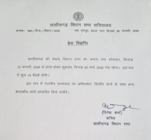 • छत्तीसगढ़ विधानसभा का बजट सत्र: 23 फरवरी से 20 मार्च तक चलेगा सत्र, होंगी 15 बैठकें