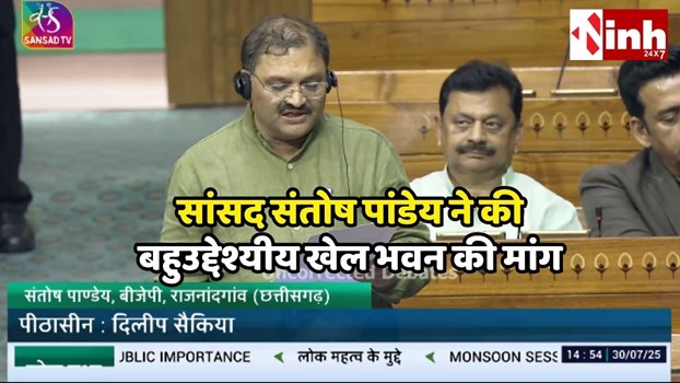 नई दिल्ली //कवर्धा -संजय यादव : राजनांदगांव लोकसभा क्षेत्र के सांसद संतोष पांडेय ने लोकसभा में कबीरधाम (कवर्धा) जिले और आसपास के क्षेत्रों के खिलाड़ियों को बेहतर खेल सुविधाएं उपलब्ध कराने के लिए बहुउद्देश्यीय खेल भवन के निर्माण की मांग की है। उन्होंने यह मुद्दा केन्द्रीय खेल मंत्री मनसुख मांडविया और लोकसभा के समक्ष उठाया।