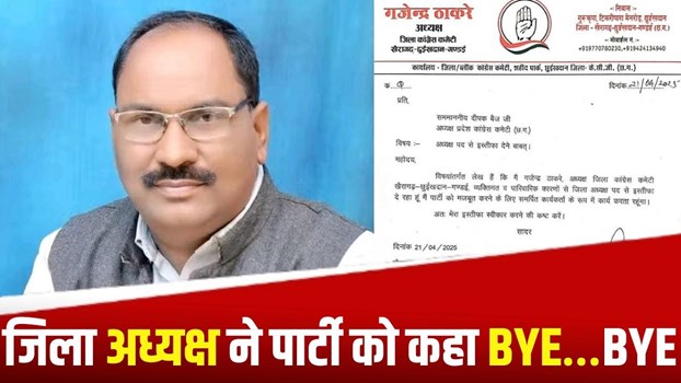 खैरागढ़। जिला कांग्रेस अध्यक्ष गजेंद्र ठाकरे ने अपने पद से इस्तीफा दे दिया है। उन्होंने प्रदेश इंका अध्यक्ष दीपक बैज को लिखे पत्र में त्यागपत्र देने का कारण व्यक्तिगत एवं पारिवारिक बताया है। उन्होंने कहा है कि वह समर्पित कार्यकर्ता के रूप में संगठन के लिए कार्य करते रहेंगे।