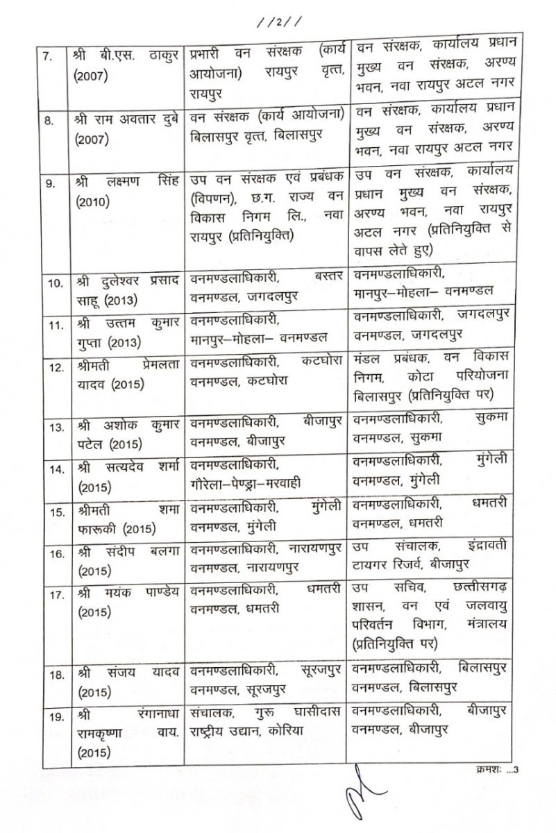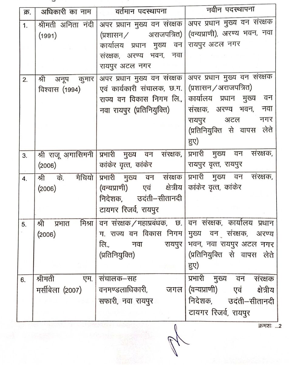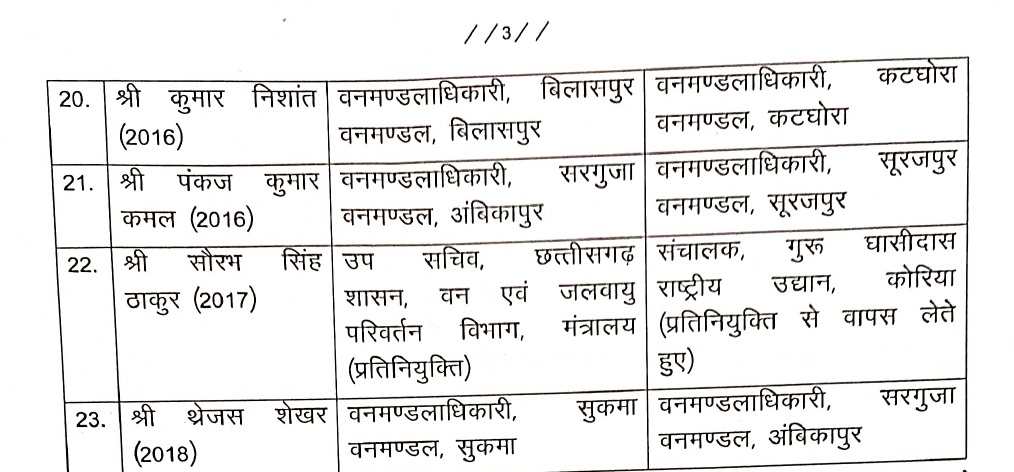 Indian Forest Service: राज्य शासन द्वारा भारतीय वन सेवा के 23 अधिकारियों की प्रशासनिक दृष्टिकोण से नवीन पदस्थापना की गई है। वन एवं जलवायु परिवर्तन विभाग मंत्रालय महानदी भवन, नवा रायपुर अटल नगर से आदेश आज जारी दिया गया है, जिसकी सूची इस प्रकार है-