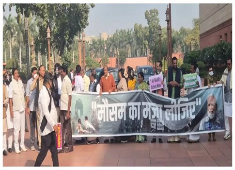 • संसद का शीतकालीन सत्र: प्रदूषण पर विपक्ष का हंगामा, गैस मास्क पहनकर किया प्रदर्शन