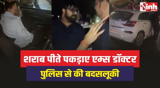 Bhopal AIIMS Doctor : मध्यप्रदेश की राजधानी भोपाल के बागसेवनिया थाना क्षेत्र से एक शर्मनाक मामला सामने आया है। यहां एम्स अस्पताल के तीन डॉक्टर पुलिस द्वारा गश्त के दौरान गाड़ी में खुलेआम शराब पीते हुए पकड़े गए। जब पुलिस ने कार्रवाई करने की बात कही तो शराब पी रहे डॉक्टरों ने न केवल बदसलूकी की, बल्कि गाली-गलौज करते हुए पुलिसकर्मियों से अभद्र व्यवहार भी किया। इस पूरे घटनाक्रम का वीडियो सोशल मीडिया पर वायरल हो रहा है।