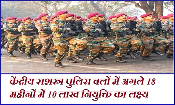 पी एम मोदी द्वारा 22 अक्टूबर को भर्ती अभियान शुरू किया गया जिसके तहत अगले 18 महीनों के अंतर्गत केंद्रीय सशस्त्र पुलिस बलों में 10 लाख कर्मियों की नियक्ति किए जाने का लक्ष्य रखा गया है।