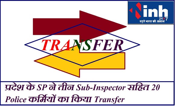 SP ने अंबिकापुर पुलिस विभाग में 3 sub-inspectors, 20 police कर्मचारी 6 सहायक उप-निरीक्षक और साथ ही 5 प्रधान आरक्षक और 6 आरक्षकों का ट्रान्सफर किया गया है.