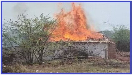 भीड़ ने मकान पर लगाई आग फिर हुई ब्लास्ट :