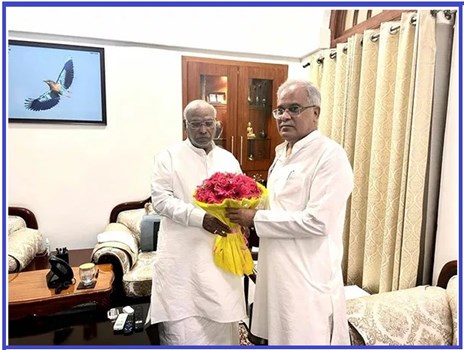 CM Baghel met Kharge: मुख्यमंत्री भूपेश बघेल आज दिल्ली दौरे हैं, इस दौरान उन्होंने कांग्रेस के राष्ट्रीय अध्यक्ष मल्लिकार्जुन खड़गे से मुलाकात की। और बजट (chhattisgarh budget 2023) में किये गये प्रावधानों को लेकर खड़गे के साथ विस्तार से चर्चा की। मुख्यमंत्री ने बजट के विस्तार में युवाओं, किसानों के लिए किए गए प्रावधानों की जानकारी दी. बजट की सराहना करते हुए कहा यह बजट सभी वर्गों के लिए निश्चित रूप से लाभप्रद होगा।