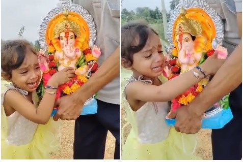 एक ऐसी ही भावुक कर देनी वाली वीडियो गरियाबंद से नन्ही बच्ची ऋद्विमा कश्यप का खूब वायरल हो रहा है, जो देवभोग क्षेत्र के सरगीगुड़ा गांव का है. जहां एक परिवार बप्पा की मूर्ति का विसर्जन करने के लिए गया, तब एक नन्ही बच्ची ऋद्विमा कश्यप गणेश जी की मूर्ति से लिपटकर फूट-फूट कर रोने लगी. बच्ची बप्पा को जाने नहीं देना चाहती, उसके परिजन बच्ची को समझाते हुए कह रहे हैं कि, बप्पा को उनकी मां के पास जाने दो. बप्पा अगले साल फिर आएंगे, हम उन्हें लेने जाएंगे, अभी जाने दो,