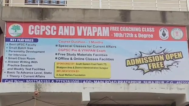 सूरजपुर : छत्तीसगढ़ के सूरजपुर जिले में अब युवाओं को सरकारी नौकरियों की तैयारी के लिए दूर नहीं जाना पड़ेगा। SECL भटगांव और जिला प्रशासन के संयुक्त सहयोग से ‘ए आज़ाद फाउंडेशन’ द्वारा मुफ्त CGPSC और व्यापम कोचिंग सेंटर की शुरुआत की गई है। यह पहल SECL के CSR फंड से की गई है, जिसका उद्देश्य आर्थिक रूप से कमजोर तबके के प्रतिभाशाली छात्रों को प्रतियोगी परीक्षाओं की तैयारी का अवसर देना है।
