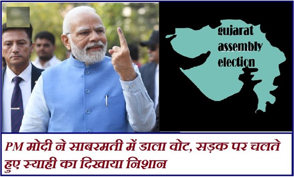 Gujarat Election 2022: गुजरात के दुसरे फेज के चुनाव के लिए प्रधानमंत्री नरेन्द्र मोदी ने अहमदाबाद के राणिप इलाके में बने पोलिंग बूथ में मतदान किया, वहां उनका ढोल-नगाड़ों से स्वागत किया गया. PM ने वोटिंग रूम से बहार निकल कर स्याही का निशान भी दिखाया।इस दौरान चारों तरफ मोदी-मोदी के नारे गूंजने लगे।