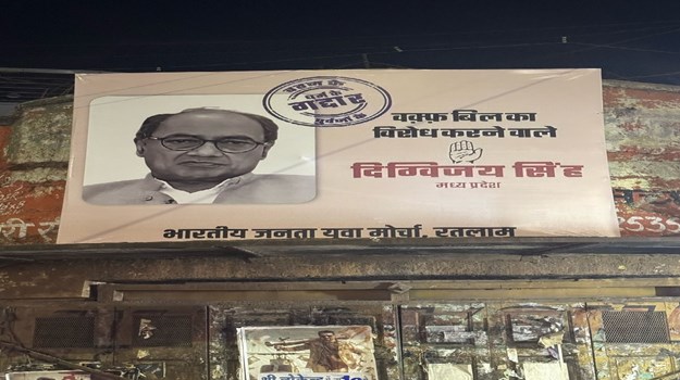 दरअसल, दिग्विजय सिंह वक्फ बिल का लगातार विरोध कर रहे है। इसी के चलते रतलाम में भारतीय जनता युवा मोर्चा ने वक्फ बिल की खिलाफत को लेकर रतलाम के दो बत्ती फ्रींगज चौराहे पर दिग्विजय के गद्दार वाले पोस्टर लगाए गए। बता दें कि यह पोस्टर BJYM जिला अध्यक्ष विप्लव जैन ने कहने पर लगाया गया है। तो वही भोपाल में भी दिग्विजय सिंह के खिलाफ पोस्टर लगाए गए है। जिसे पुलिस ने तत्काल प्रभाव से निकाला। इधर, मामले में तूल पकड़ने के बाद कांग्रेस आज पोस्टर लगाने वालों के खिलाफ कार्रवाई की मांग करेगी। हालांकि अभी तक इस मामले को लेकर कांग्रेस केदिग्गज नेताओं ने कोई बयान जारी नहीं किया है।