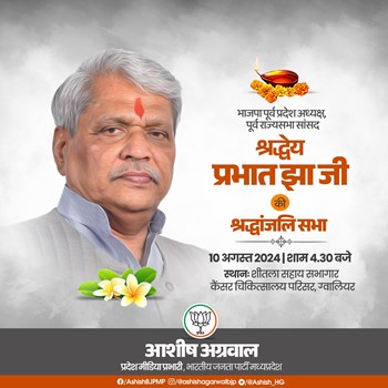 • GWALIOR NEWS: भोपाल के बाद ग्वालियर में आज प्रभात झा की श्रद्धांजलि सभा, CM मोहन सहित कई दिग्गज होगी शामिल