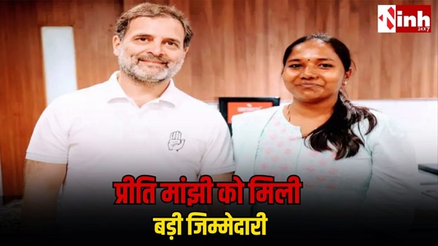 पेंड्रा। छत्तीसगढ़ के पेंड्रा जिले की निवासी प्रीति मांझी को कांग्रेस पार्टी के द्वारा बड़ी जिम्मेदारी सौंपीं गई है. दरअसल प्रीति मांझी को युवा कांग्रेस राष्ट्रीय संयुक्त सचिव बनाया है। कुछ दिन पूर्व दिल्ली में प्रीति मांझी और राहुल गांधी के बीच मुलाकात हुई थी। इस दौरान छत्तीसगढ़ में बैगाओं की समस्याओं से प्रीति ने अवगत कराया था।