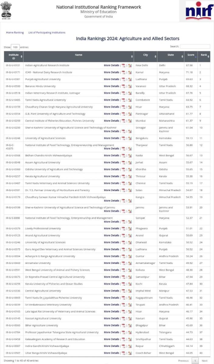 रायपुर। छत्तीसगढ़ के राजधानी रायपुर सहित देश के टॉप 100 एग्रीकल्चर विश्वविद्यालयों की रैंकिंग इन दिनों लगातार ही जारी है। वहीं इसके टॉप 10 की रैंक से पिछड़ कर इंदिरा गांधी कृषि विश्वविद्यालय अब 39 पायदान पर पहुंच गया है। बतादें कि इंदिरा गांधी कृषि विश्वविद्यालय साल 2020 में टॉप 10 की लिस्ट में शामिल था। वहीं एक ओर भारतीय कृषि अनुसंधान संस्थान दिल्ली ने 87.98 अंकों के साथ पहले स्थान पर अपनी जगह बनाई है।