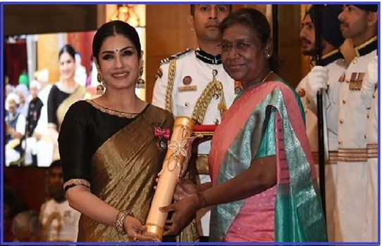 Raveena Tandon received Padma Shri Award: बॉलीवुड की मशहूर एक्ट्रेस रवीना टंडन को देश की राष्ट्रपति द्रोपदी मुर्मू ने पद्मश्री अवार्ड से सम्मानित किया है.