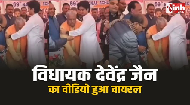 MLA Devendra Jain : शिवपुरी से विधायक देवेंद्र जैन का एक वीडियो सोशल मीडिया पर तेजी से वायरल हो रहा है। वायरल वीडियो में विधायक देवेंद्र जैन अपने ही जन्मदिन समारोह के दौरान एमपीसीए अध्यक्ष और केंद्रीय मंत्री ज्योतिरादित्य सिंधिया के पुत्र महा आर्यमन सिंधिया के पैर छूते नजर आ रहे हैं।