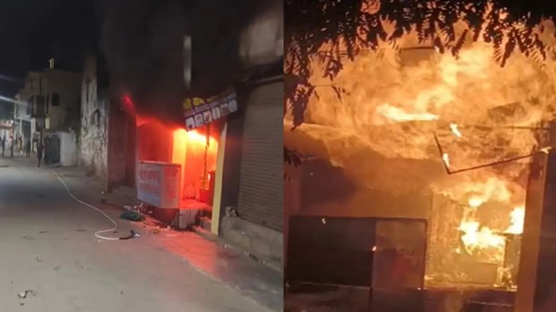 दुकान का ताला टूटा,अंदर आग लगी :
