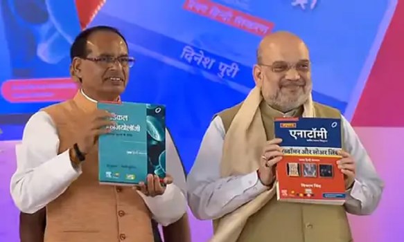 BHOPAL: देश में पहली बार मेडिकल की पढाई हिंदी में होगी इसकी शुरुआत मध्यप्रदेश से हो रही है, जिसका विमोचन आज यानि 15 अक्टूबर को अमित शाह के द्वारा मध्यप्रदेश भोपाल में किया गया. अमित शाह ने रिमोट बटन दबाकर तीन किताबों का विमोचन किया। केंद्रीय गृहमंत्री शाह का एयरपोर्ट पर मुख्यमंत्री शिवराज सिंह चौहान ने स्वागत किया। वे यहां से वायुसेना के हेलीकॉप्टर से लाल परेड ग्राउंड पहुंचे। उनके साथ मुख्यमंत्री शिवराज सिंह चौहान और प्रदेश अध्यक्ष वीडी शर्मा भी थे। इस दौरान लाल परेड ग्राउंड पर मुख्यमंत्री शिवराज सिंह चौहान और मंत्री विश्वास सारंग ने स्मृति चिन्ह देकर उनको सम्मानित किया। कार्यक्रम में चिकित्सा शिक्षा मंत्री विश्वास सारंग ने कहा- हमने फर्स्ट की तीन किताबों का हिन्दी रूपांतरण किया है। 97 डॉक्टरों की टीम ने इस पर काम किया है।