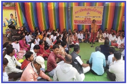 सोमवार से, एक विभाग के साथ अनुबंध के तहत जिले का पूरा कार्यबल हड़ताल पर चला गया। शहर के मध्य में स्थित जयस्तंभ चौक पर बड़ी संख्या में संविदा कर्मचारी हड़ताल में शामिल हुए. पहले दिन महिलाओं ने अनोखे अंदाज में प्रदर्शन शुरू किया. जहां महिलाओं ने अपने हाथों पर मेहंदी के सहारे सन्देश लिख कर सोशल मीडिया पर सनसनी मचा दी। साथ ही किया हनुमान चालीसा का जाप